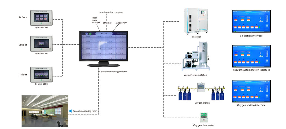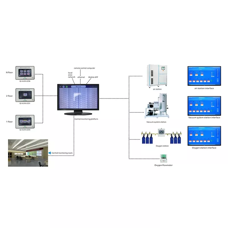 6. 중앙 집중식 모니터링 시스템이 이더넷에 연결된 후 원격 작동 및 네트워크 공유를 실현할 수 있습니다. 표준 RS485 인터페이스는 모든 실시간 경보 신호 및 압력 데이터 출력을 제공합니다.